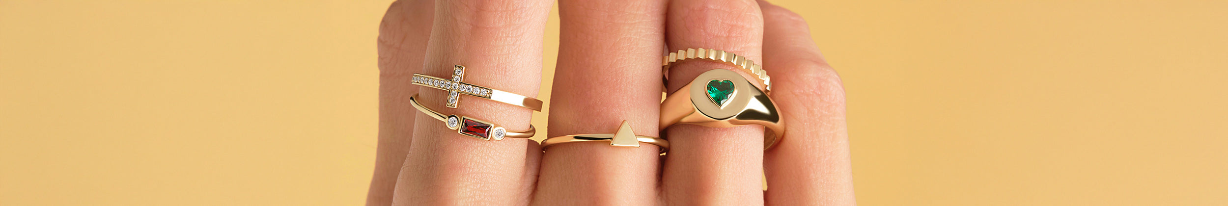 14K Gold Bezel Set Double Diamond Ring, Emeris
