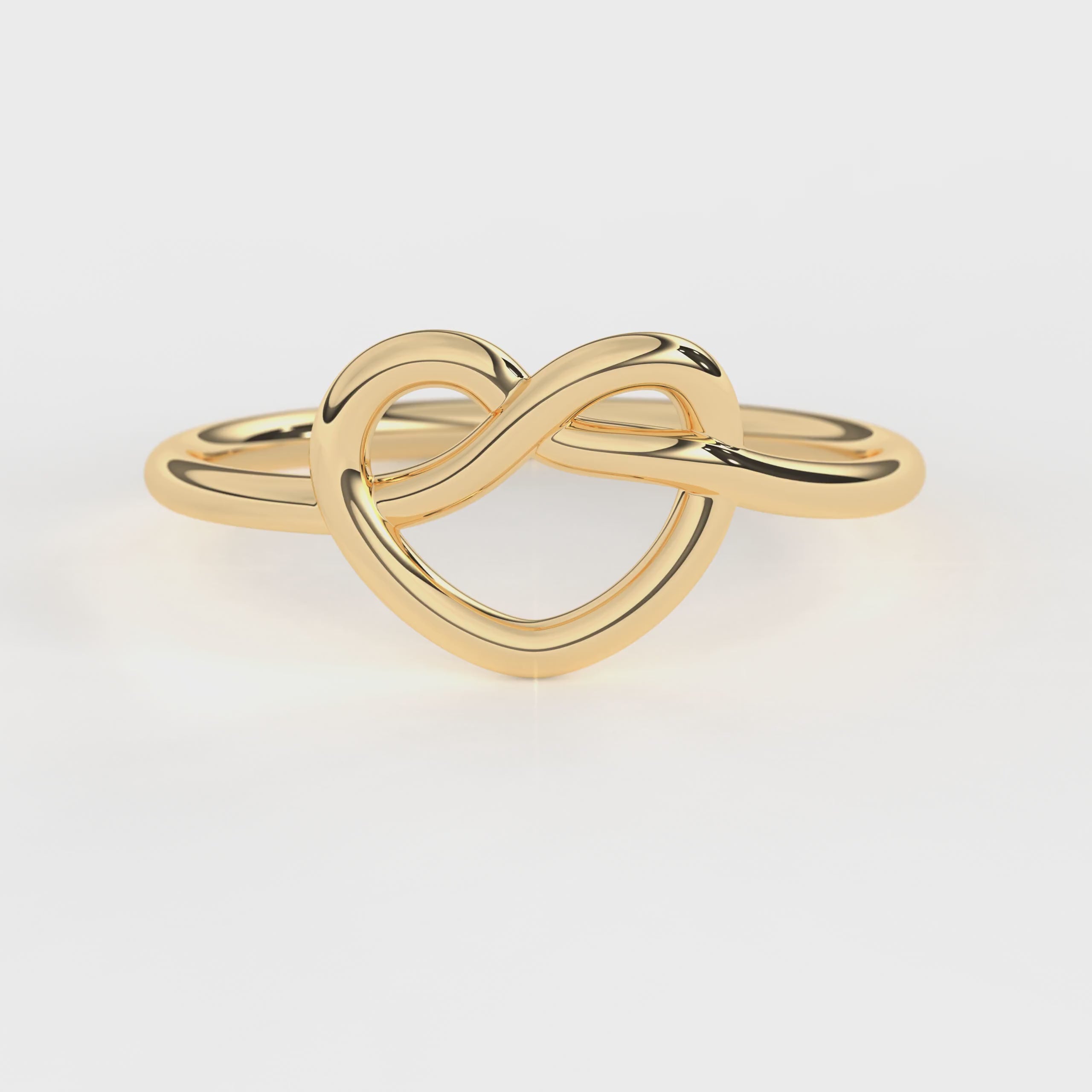 A heart knot ring symbolizes an unbreakable bond of love and commitment. The intertwining design represents two lives coming together, making it a popular choice for those seeking a gold love ring or knot promise ring.