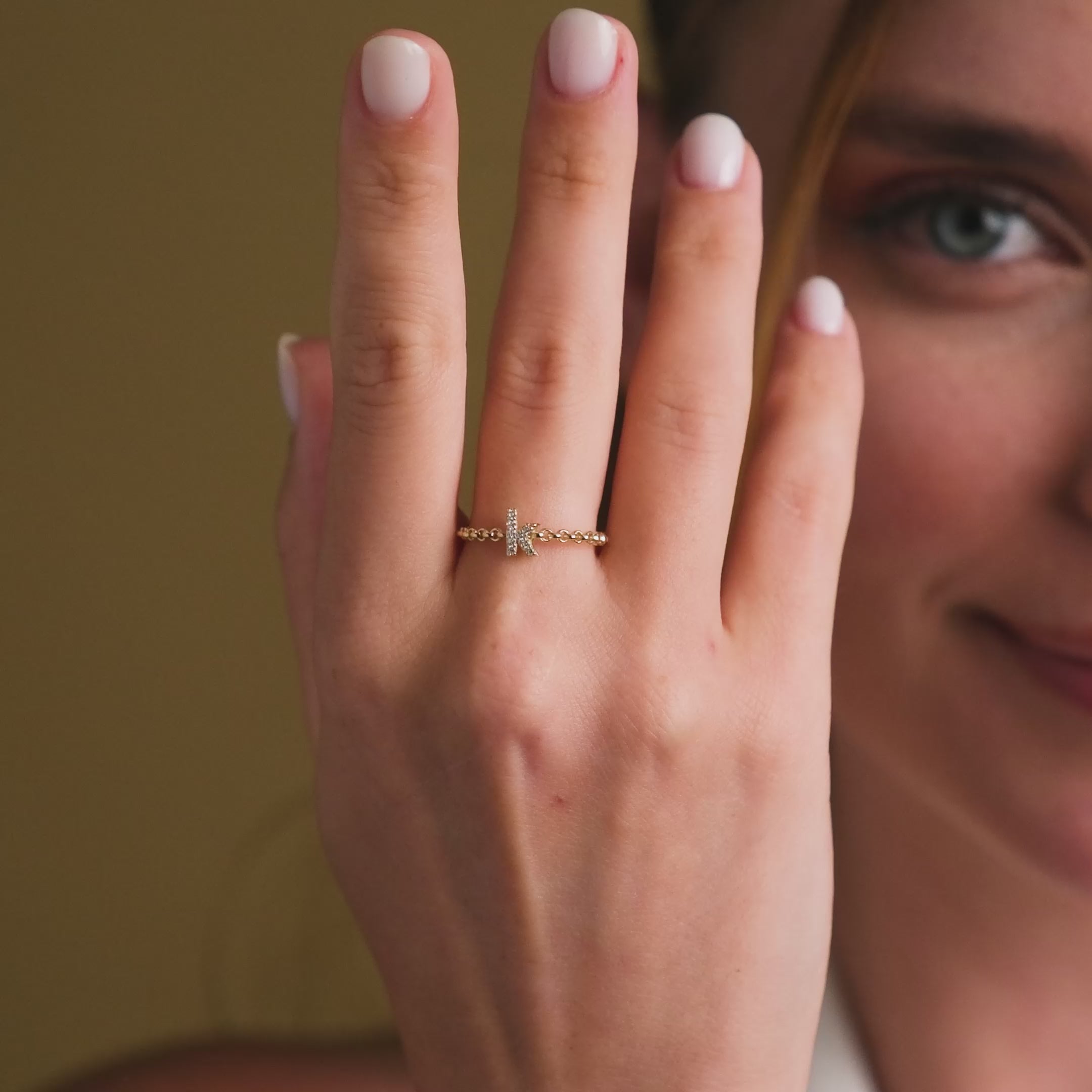 Chain Band Initial Ring 14k Gold