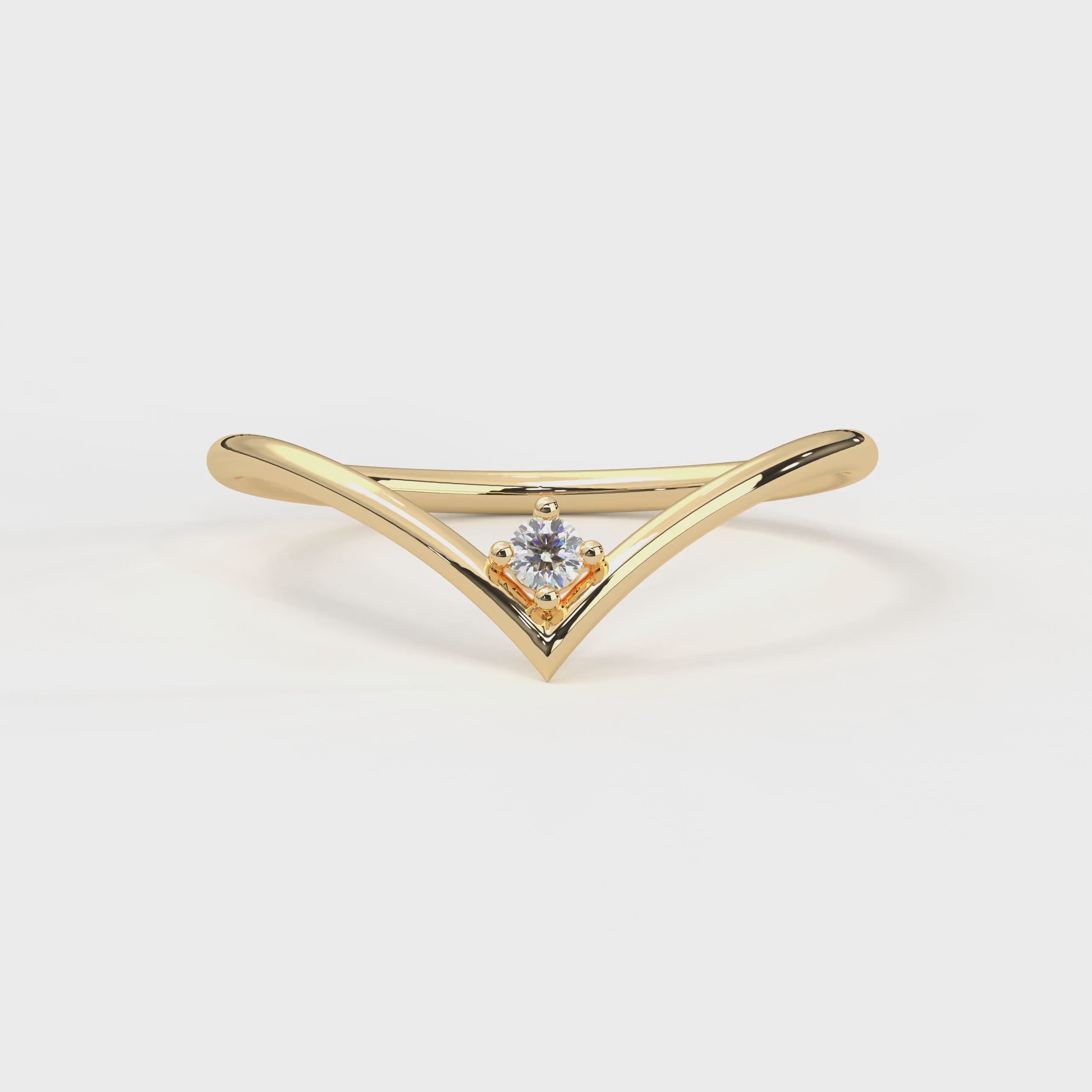 This Wishbone Ring in 14K Gold features a dazzling diamond chevron design. The V-shaped diamond ring is perfect for a unique wedding band or a special gift. Its curved shape makes it a stylish diamond wishbone ring, blending elegance with simplicity. Ideal as a gold chevron ring, it complements other jewelry effortlessly. Perfect for any occasion, this ring is a stunning addition to any collection.