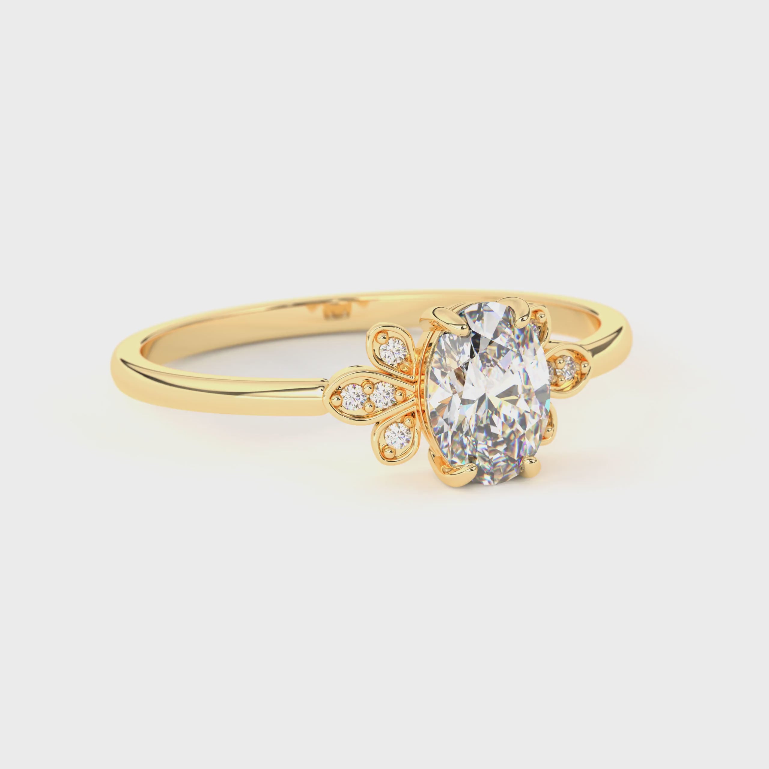Meet Aetheria, a truly captivating oval diamond ring featuring a stunning oval cut diamond encircled by six marquise-shaped clusters, all set in a sleek 14K gold band. Inspired by the Greek word for "divine air", this diamond cluster ring captures an ethereal essence with its sparkling oval diamond and delicate, floral-inspired design with pave diamonds. Whether chosen as a perfect oval diamond engagement ring or given as a special gift for her birthday or your anniversary, Aetheria is more than just a cluster diamond engagement ring - it's designed to make an everlasting impression.