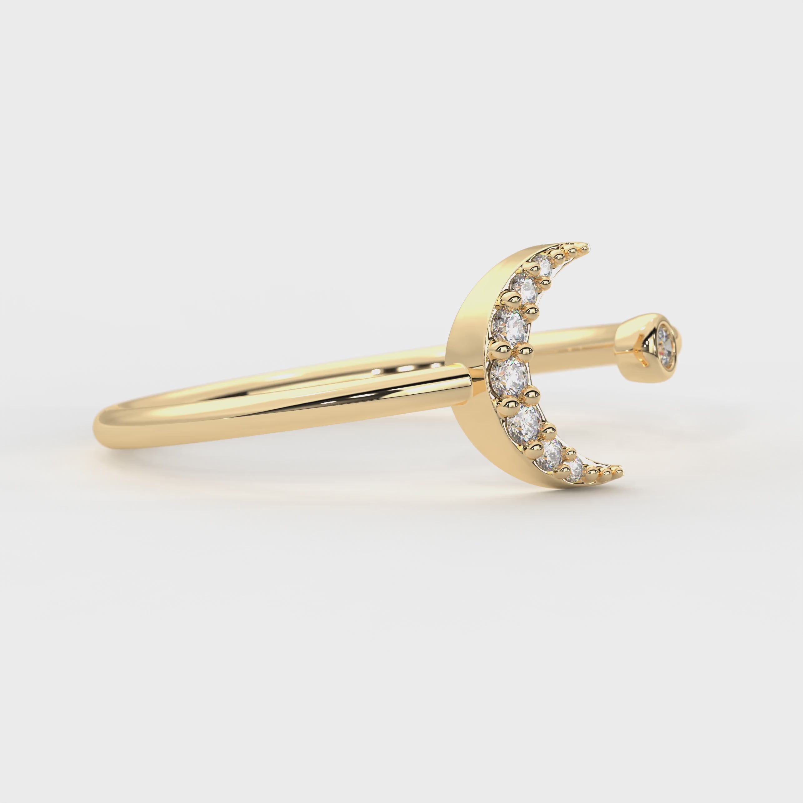 Diamond Crescent Moon Ring 14k Gold
