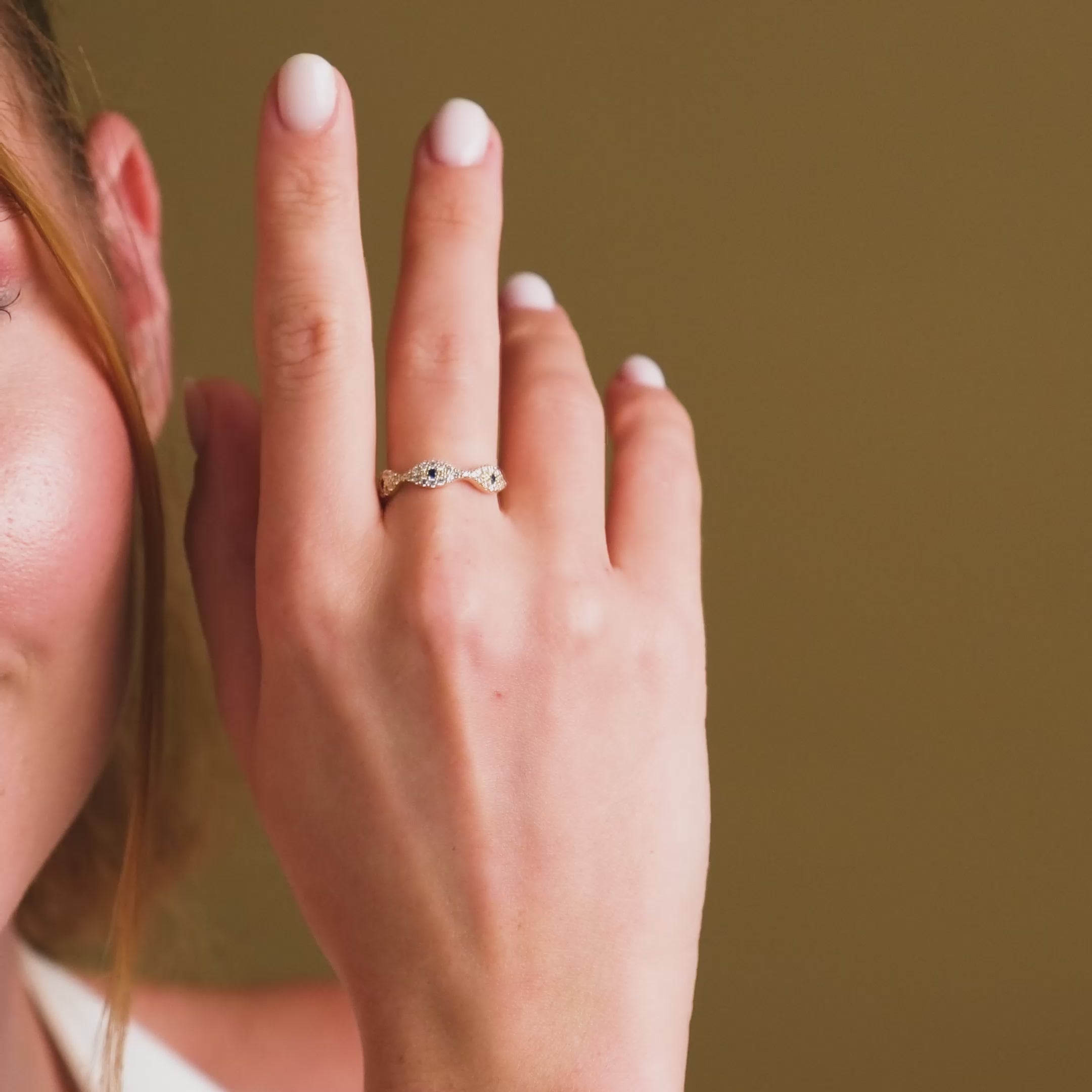 Half Eternity Evil Eye Ring 14k Gold