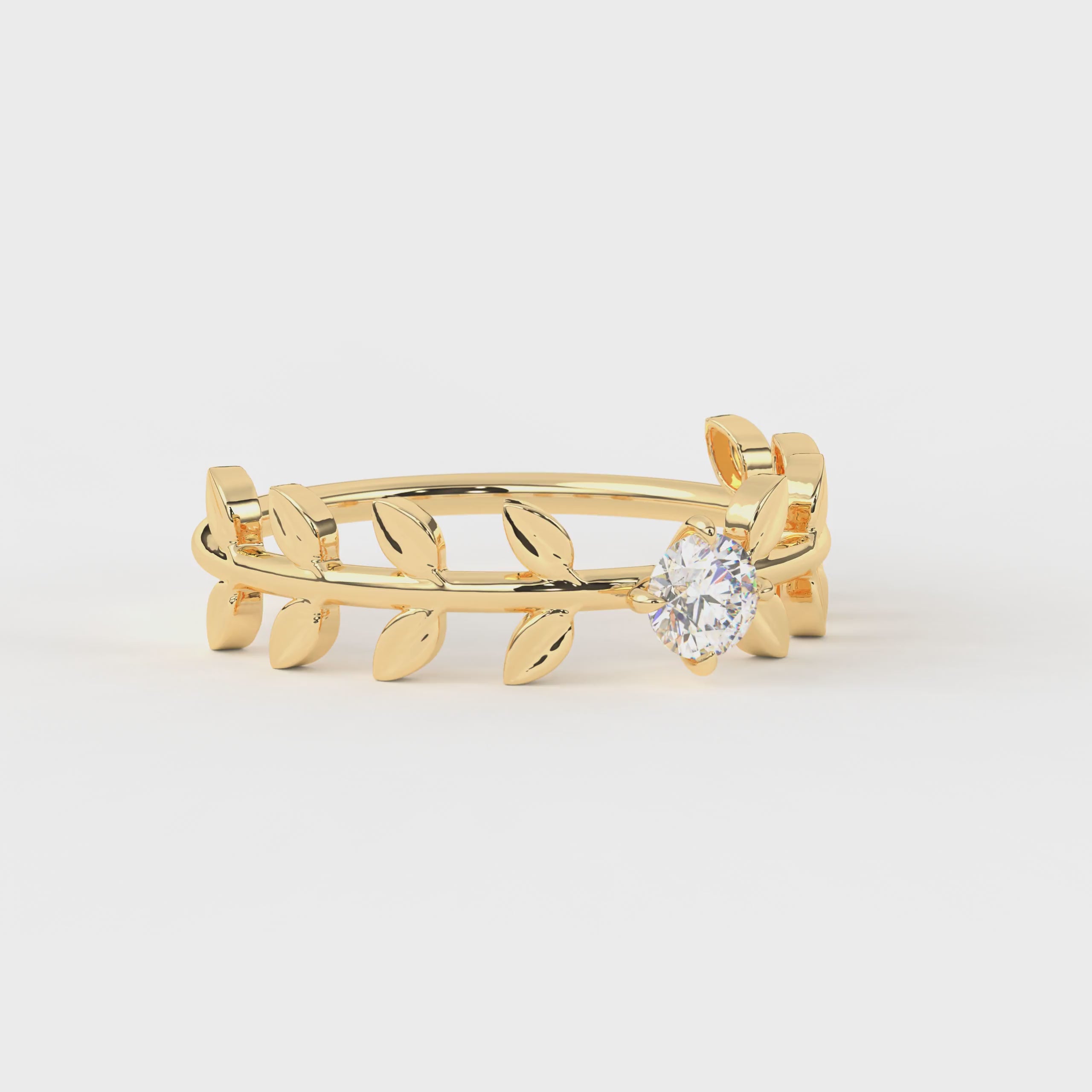 Solitaire Diamond Branch Leaf Engagement Ring 14k Gold
