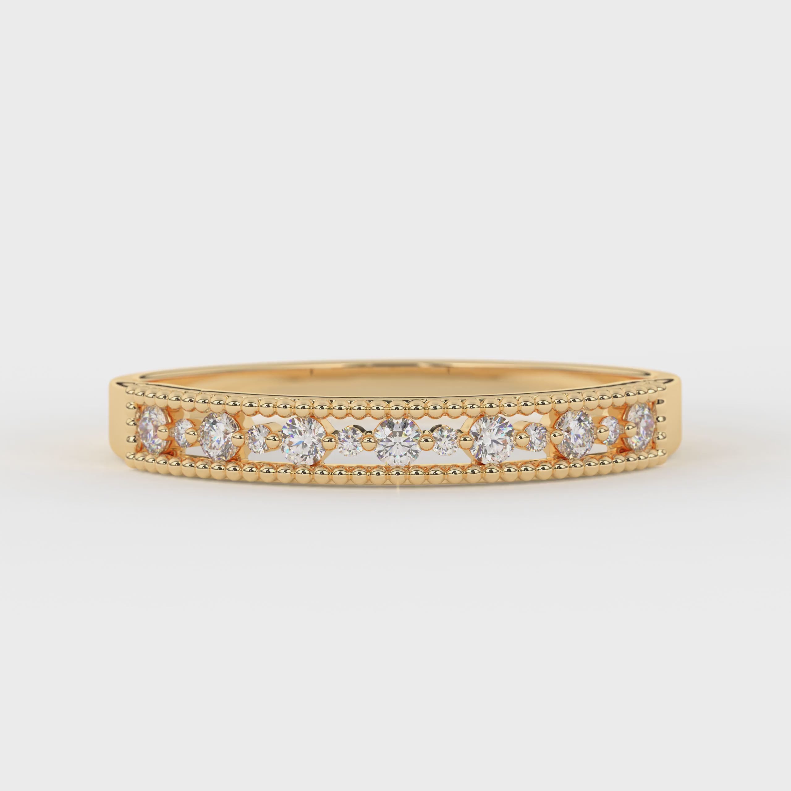 Step into the world of timeless elegance with this stunning milgrain wedding ring! While this gold fashion ring offers a vintage look with meticulously placed beading around it, the diamonds in the middle add a modern shine to it. This fashion ring jewelry, which can be easily stacked with other rings thanks to its delicate structure, can also be worn alone by those who love a dainty look. This diamond fashion ring will become one of the most popular pieces in your collection, admired for its classic design. You may also add sophistication to your special day with this diamond wedding band with milgrain in its classic style. If you want to add a vintage touch to your wedding ring, you can't go wrong with this beaded wedding band. And if you're looking for a women's fashion ring with a romantic design for her birthday or your anniversary, this elegant fashion ring is exactly what you need!